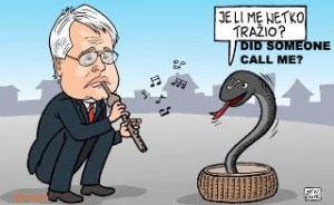 The cartoon of Ivo Josipovic and the Snake signifies the fact that the snake he says is still present in Croatia is a myth of his own creation, just as snake-charming is.