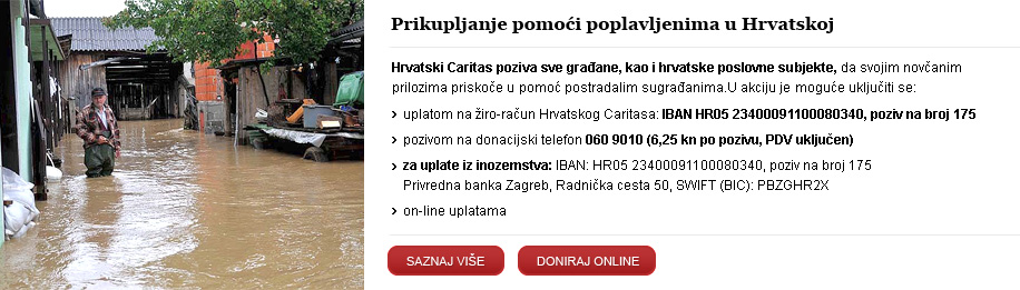 Also The Croatian Caritas has launched an emergency appeal for help to the flood affected areas.