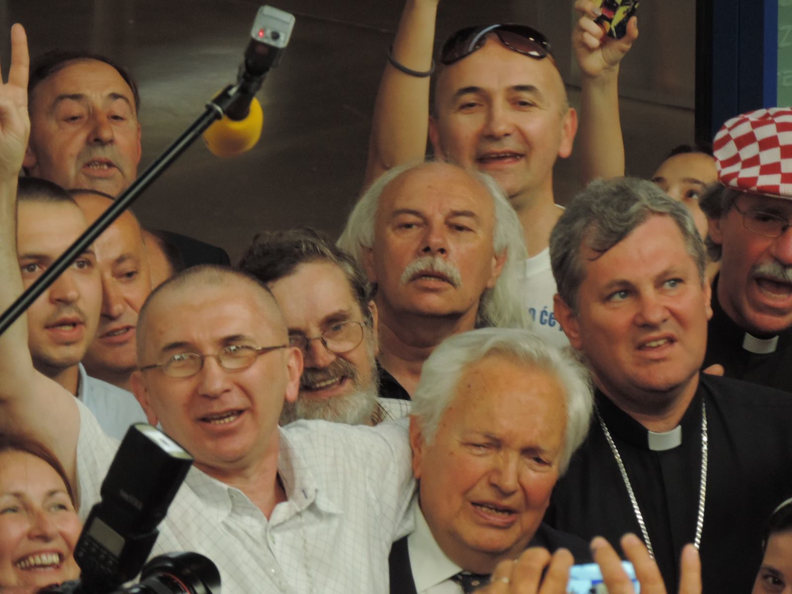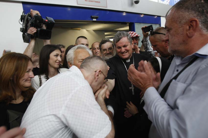 Several hundred people gathered at the airport to welcome back home from prison the man they consider a hero, not a war criminal. Kordic’s ICTY sentence was not the one of a war criminal who committed crimes but that of a politician who was at the time of those crimes in a high position of Herceg-Bosna political leadership and responsibilities. Indeed, among the welcoming crowds were many most esteemed historians, public personalities who work tirelessly at justice for victims as well as some highly positioned political officials at the time of the 1990’s war. These include: dr Zvonimir Separovic, dr Slobodan Lang, dr Josip Pecaric, dr Zdravko Tomac, dr Ivic Pasalic, dr Ante Kovacevic, dr Josip Jurcevic – Bishop Vlado Kosic from Sisak was there to lead a prayer.