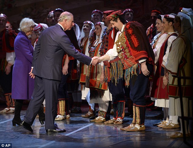 Prince Charles with Croatian folklore dancers Photo: Tim Rooke/REX/Shuttlestock