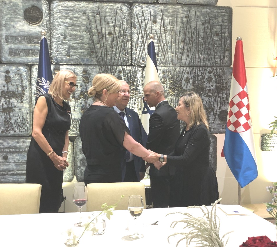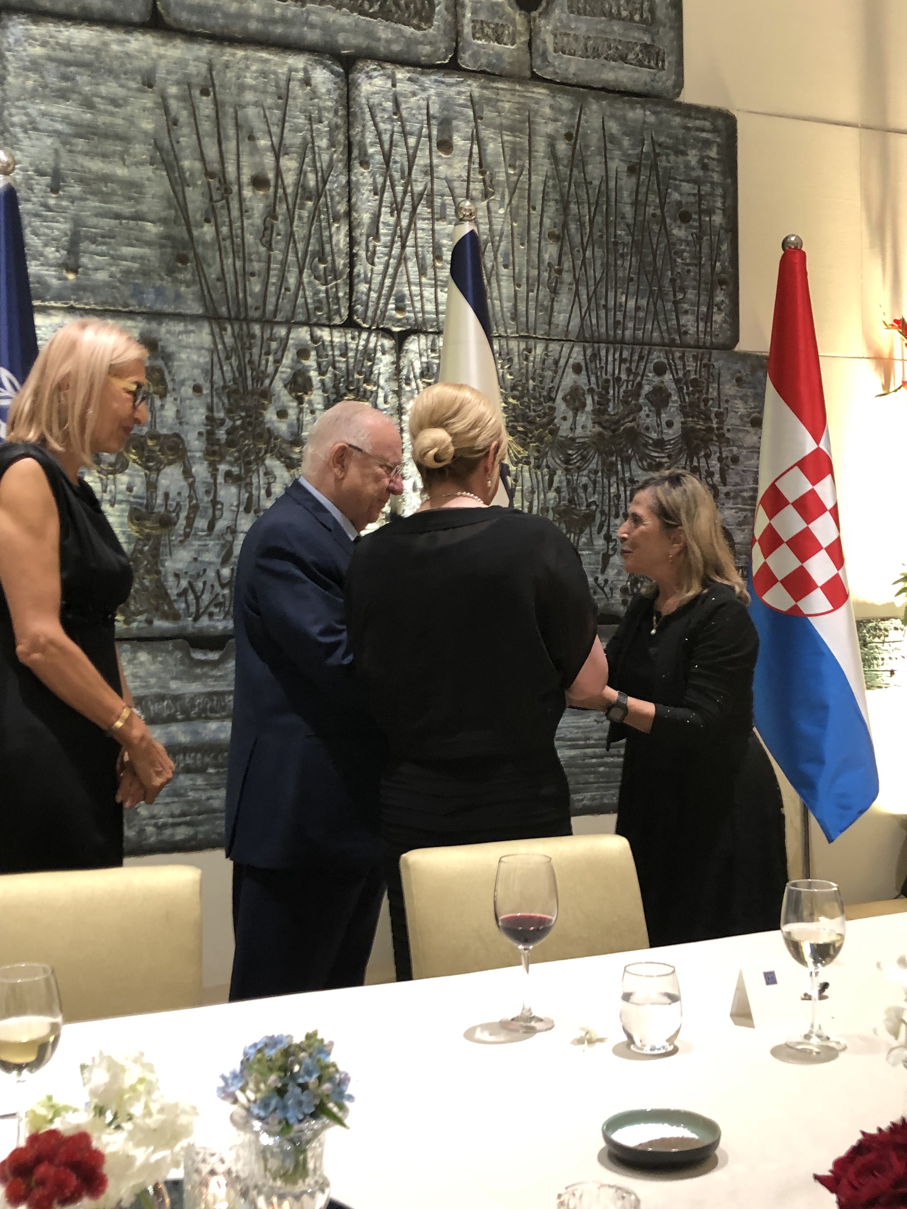 A week before the visit of the Croatian President to Israel, the Croatian Embassy in Israel informed Dr. Esther Gitman of the President’s arrival and announced that she would be contacted by the office of Israeli President Rivlin. She was invited by President Rivlin to that official and festive dinner as a Croatian guest and her husband Israel as an Israeli guest.
