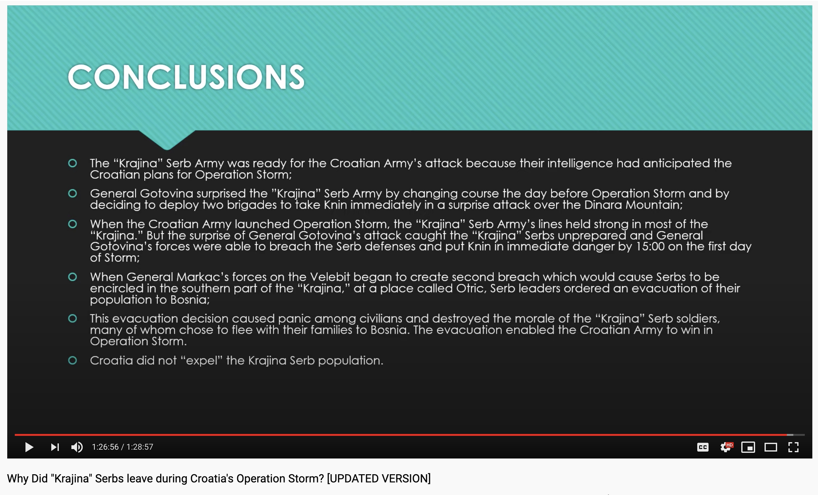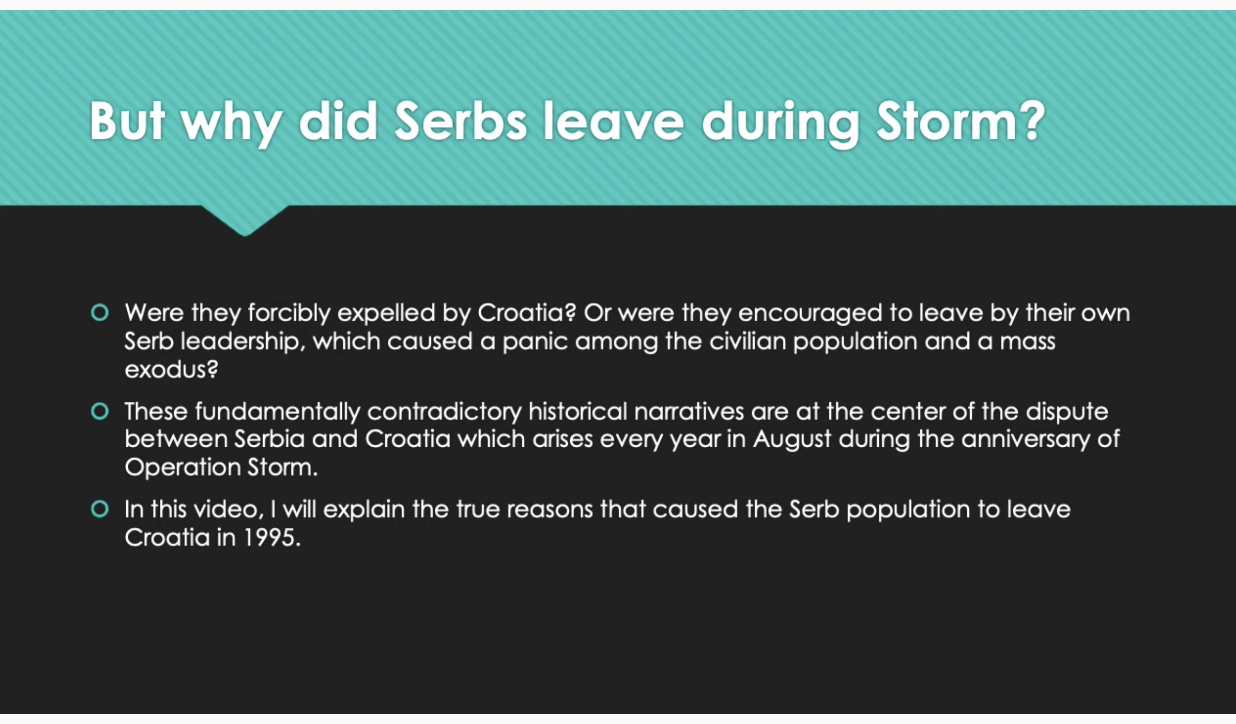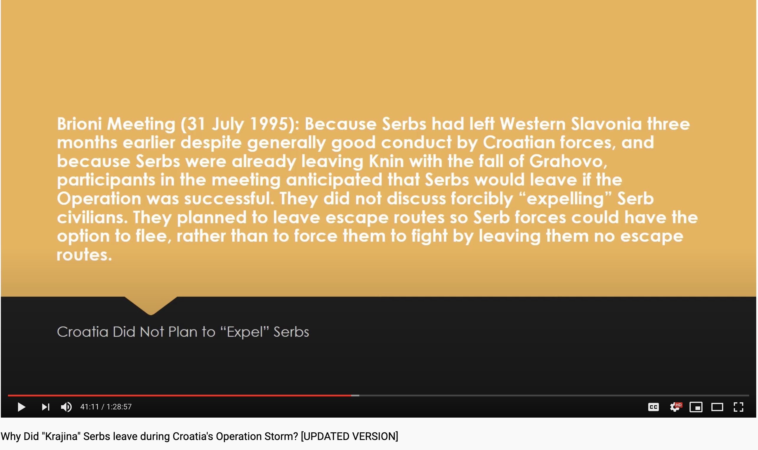 The fundamentally contradictory historical narratives are at the centre of the dispute between Serbia and Croatia which arises every year in August during the anniversary of Operation Storm. In this video I will explain the true reasons that caused the Serb population to leave Croatia in 1995….”