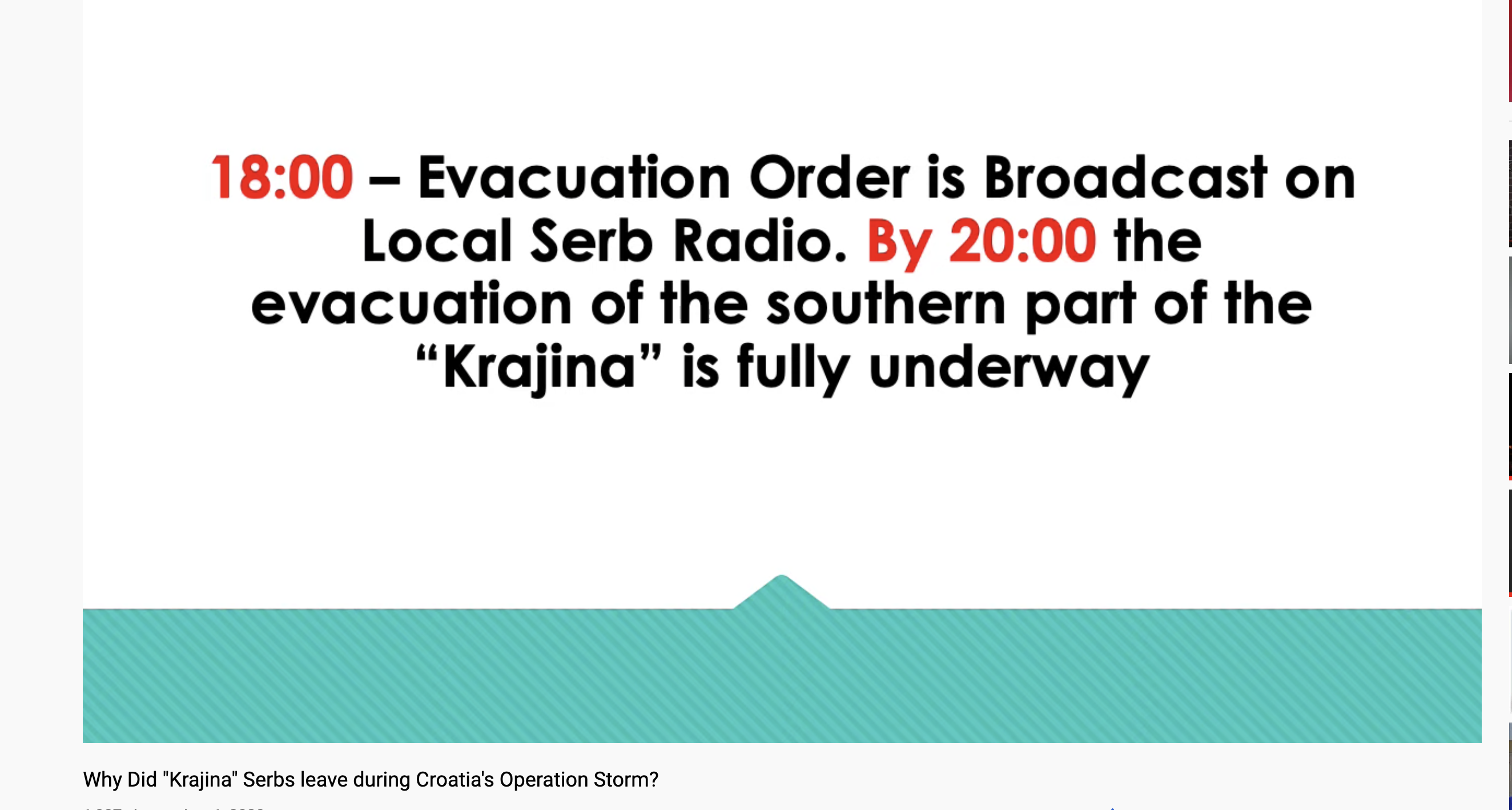 It is true that many Serbs left Croatia during Operation Storm… many civilians packed up and left and exited Croatia in long columns that took several days, leaving for the Serb occupied territory in Bosnia and Herzegovina known as Republika Srpska (Serbian Republic) or going on to Serbia itself. But the key question that has to be asked is why did the Serbs leave during Operation Storm? The issues or questions are were they forcibly expelled by Croatia or were they encouraged to leave by their own Serb leadership which caused a panic among the civilian population and a mass exodus.