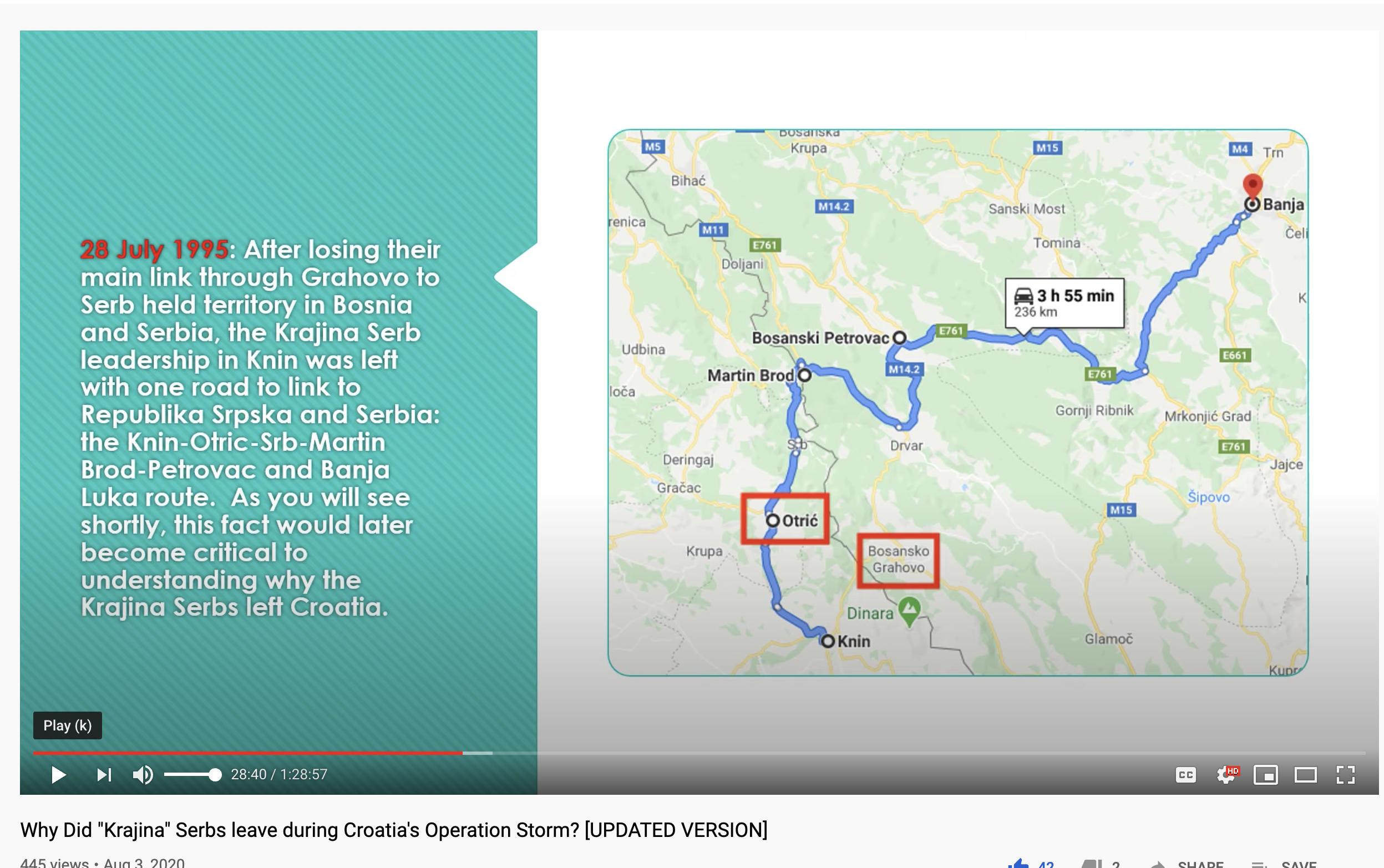 “Hello and welcome to my Youtube presentation entitled “What caused the Serb exodus from Croatia during Operation Storm”. My name is Luka Misetic, I am an attorney in New York, I spent seven years before the International Criminal Tribunal for the Former Yugoslavia as defence counsel in the case of General Ante Gotovina which dealt extensively with Operation Storm. So, I have spent many years looking at the evidence in the case. At the end of this presentation hopefully you will learn three important things about Operation Storm. The first is what caused the Serb exodus from Croatia during Operation Storm. The second important thing is that you will learn the critical role that General Ante Gotovina played in Croatia’s victory in Operation Storm and the third thing that you will hopefully learn is the importance of a little village in the Southern part of Croatia known as Otric and the importance that that village played in Croatia’s victory in Operation Storm and in the departure of Krajina Serb civilians and military from Croatia during Operation Storm.
