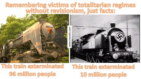 Remembering victims of totalitarian regimes without revisionism, just facts! Communist train exterminated 96 million people, Nazi train exterminated 10 million people.