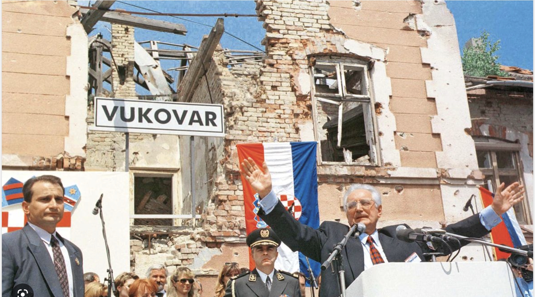 President of Croatia Dr Franjo Tudjman arrives in Vukovar on Peace Train 1997