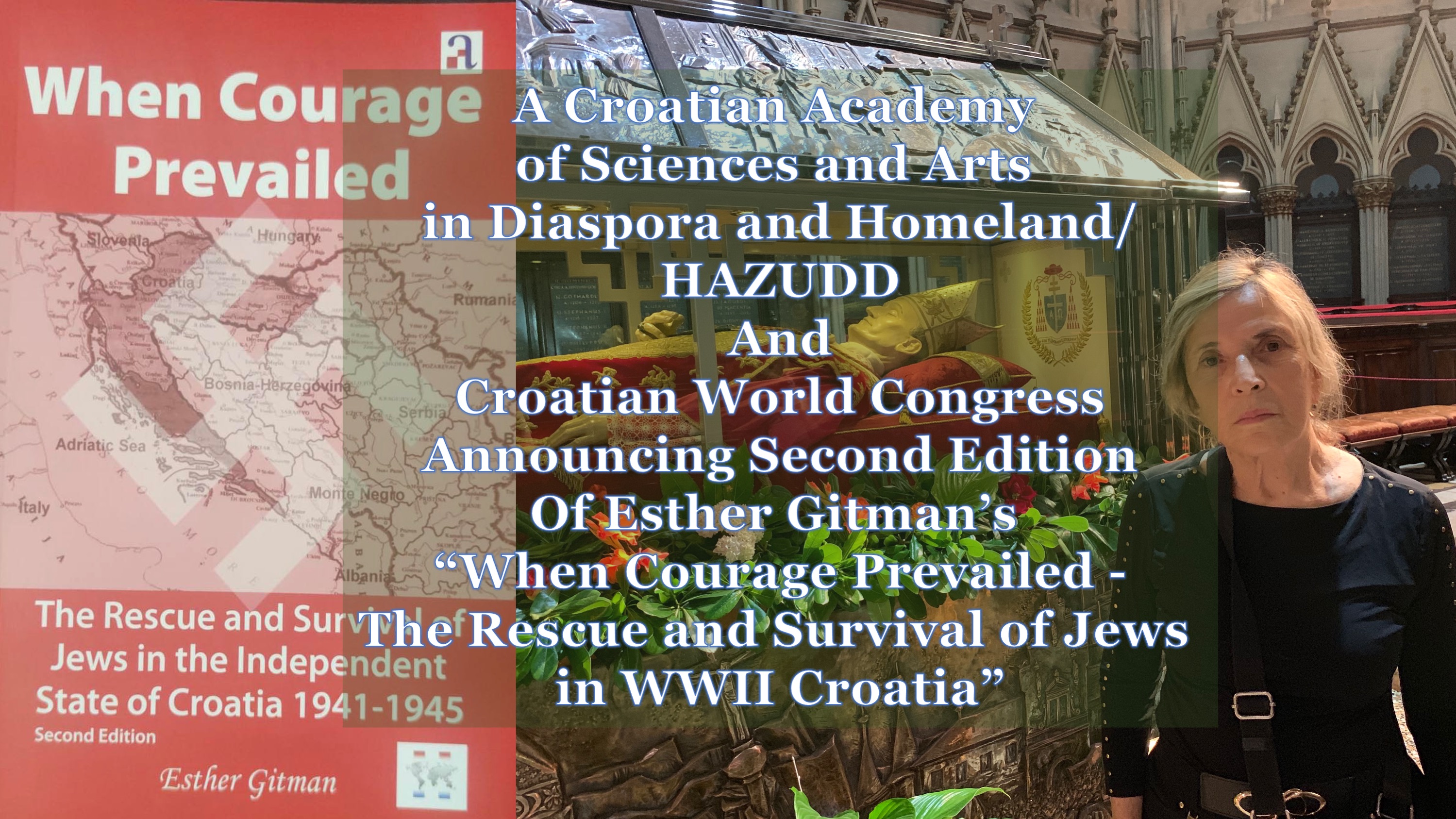 This book by Dr. Esther Gitman, When Courage Prevailed: The Rescue and Survival of Jews in the Independent State of Croatia 1941-1945, was originally published in 2011 by US New York based publisher Paragon House and made widely accessible to readers across the world. Focusing on the paramount importance for historiography of Esther Gitman’s historical research findings, the book was subsequently translated into the Croatian language and published by Kršćanska sadašnjost (Christian Contemporaneity), based in Zagreb, Croatia, in 2019, viz. Kad hrabrost prevlada: Spašavanje i preživljavanje Židova u Nezavisnoj Državi Hrvatskoj 1941 – 1945.