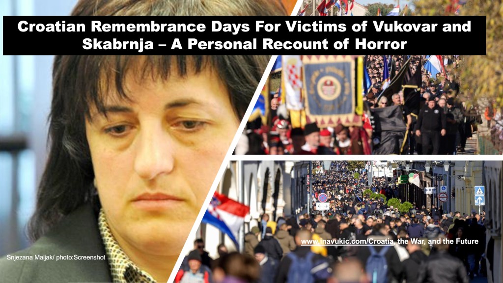 At the same time, she said, she was constantly the victim of rapists, some of whom she knew from before the war, and she also witnessed numerous tortures and killings of her fellow citizens. Although Snjezana Maljak publicly called her tormentors by name for many years, two of them were arrested only in 2018. Other Serb rapists and murderers from this terrible time still roam the streets of Croatia or Serbia or other countries without paying the price for their war crimes! Some, regretfully, were given immunity from prosecution as part of the price Croatia had to pay in 1998 for the region where Vukovar stands to be liberated from Serb occupation!