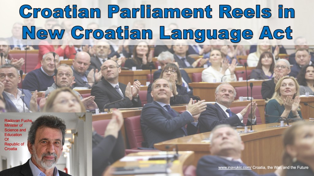 As to those who opposed the new Croatian Language Act, Croatian journalist and author of note, Hrvoje Hitrec, recently wrote “classic hate speech is reserved for opponents of the Law on the Croatian Language, terrorists very nicely placed in the daily press who seem to compete among themselves in presenting anti-Croatian baggage and it’s not post-Yugoslav, but rather Yugoslav nastiness, and it seems to the reader that we are still in the happy former a superstate where the Croatian must move cautiously so as not to provoke the wrath of other nations and nationalities.