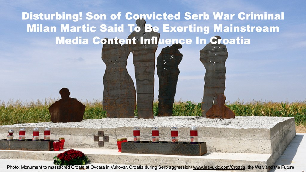 Having said this it would seem paramount for national and natural justice’s sake that incumbents of important positions in a country or nation that has been a victim of genocide and brutal aggression, such as Croatia has been from the 1990’s Yugoslav Army and rebel Serb aggression that defined the horrid Croatian Homeland War and defence of the Croatia peoples’ referendum to secede from communist Yugoslavia, are rigorously scrutinised. It is paramount for justice and well being of Croatian nation that nobody closely associated with the aggressor, including their sons and daughters, are accepted into those positions or licence to operate in victim country be given to a media company employing them, for instance, a company that exerts influence in the public domain of that country. The profound gravity of conflict of interest is too visible to avoid fearing its effects. And yet, some of the Croatian media outlets have recently revealed that the son of the most violent and brutal convicted war criminal Milan Martic is actually working for an important media company that controls two television stations in Croatia (Z1 and NovaTV) that have substantial impact and control over what the media portarys and brings to the Croatian nation and people.