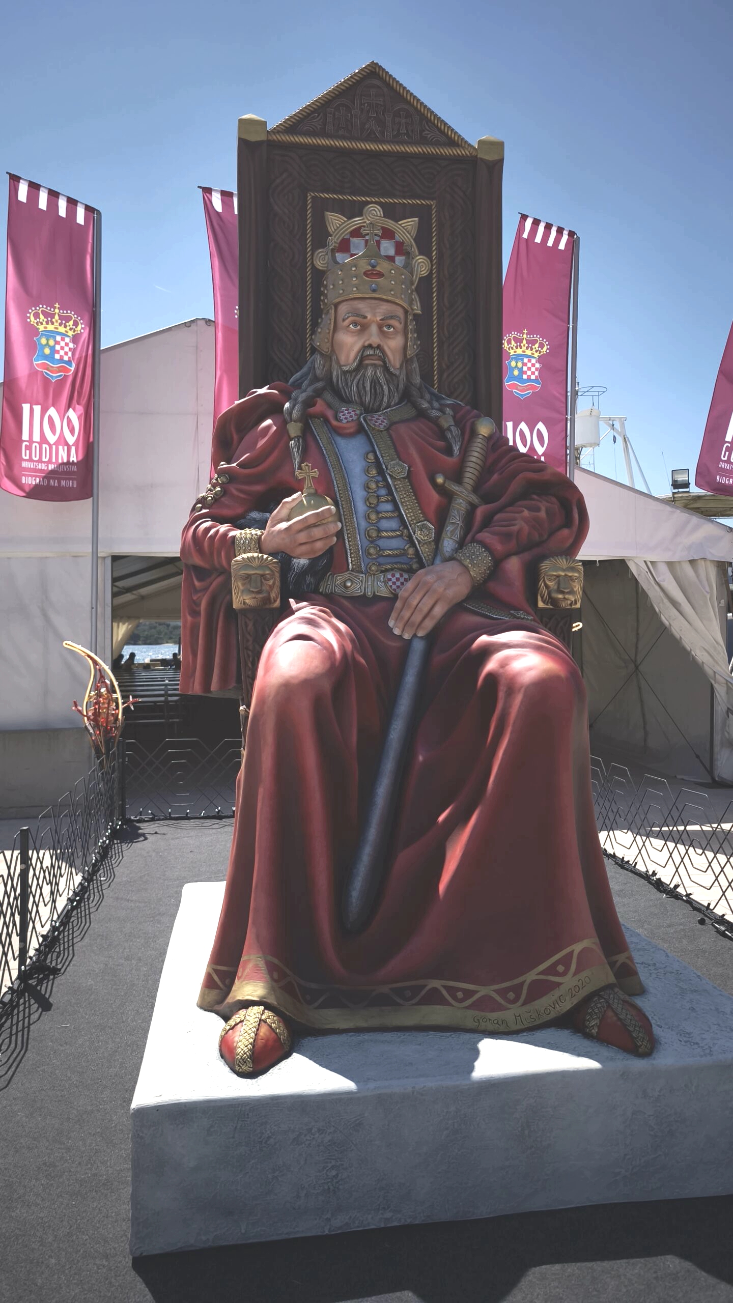 Biograd na Moru thus became, between 8 and 11 May 2025, the centre of one of the most solemn and significant events in recent Croatian history – reviving the spirit of the times of one of the greatest 10th century Kingdoms in Europe in a magnificent way. The event began on Thursday, 8 May, with the screening of the documentary film “King Tomislav” by Drazen Klaric, produced by Vecernji list newspaper, which took viewers back to the time of the founding of the Croatian state, but also with the unveiling of a monument to King Tomislav on the main pier. The statue of King Tomislav will, according to media, be moved in front of the city administration building at the main town square. Schools teach that Tomislav was crowned in 925 on the Duvno Field in today’s Bosnia and Herzegovina, that he had a magnificent army with which he successfully defended Croatia from the Bulgarians and Hungarians, and laid the foundations of Croatian statehood.