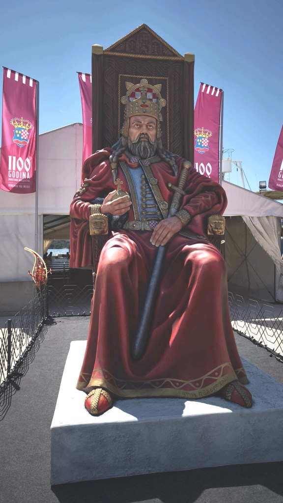 2025 is the year when Croatia marks the 1100th Anniversary since the crowning of its first king, King Tomislav. The coastal town of Biograd na Moru (Biograd at the Sea) that once was a royal city (Biograd na Moru is a Croatian royal city that was first mentioned in the mid-10th century, while in the 11th century it was the seat of Croatian kings and bishops) and one of the most important historical centres of Croatia saw this month the unveiling of a monument to King Tomislav. One may say this is nothing unusual because many other monuments to and statues of King Tomislav exist across Croatia but in fact this one is special and wonderfully surprising. It is in full and lively colours just like statues of saints and Holy family one finds in Croatian Catholic churches or porcelain dolls for children to play with or collectors to keep in glass cabinets. Even further, the monument may in one’s imagination come alive as some AI creation of the modern digital and electronic world. To me it is beautiful and strong, even though some of the Croatian media reports that some found it in bad taste! But, after all, all art works attract opposing views regardless of the mighty symbolism they represent.