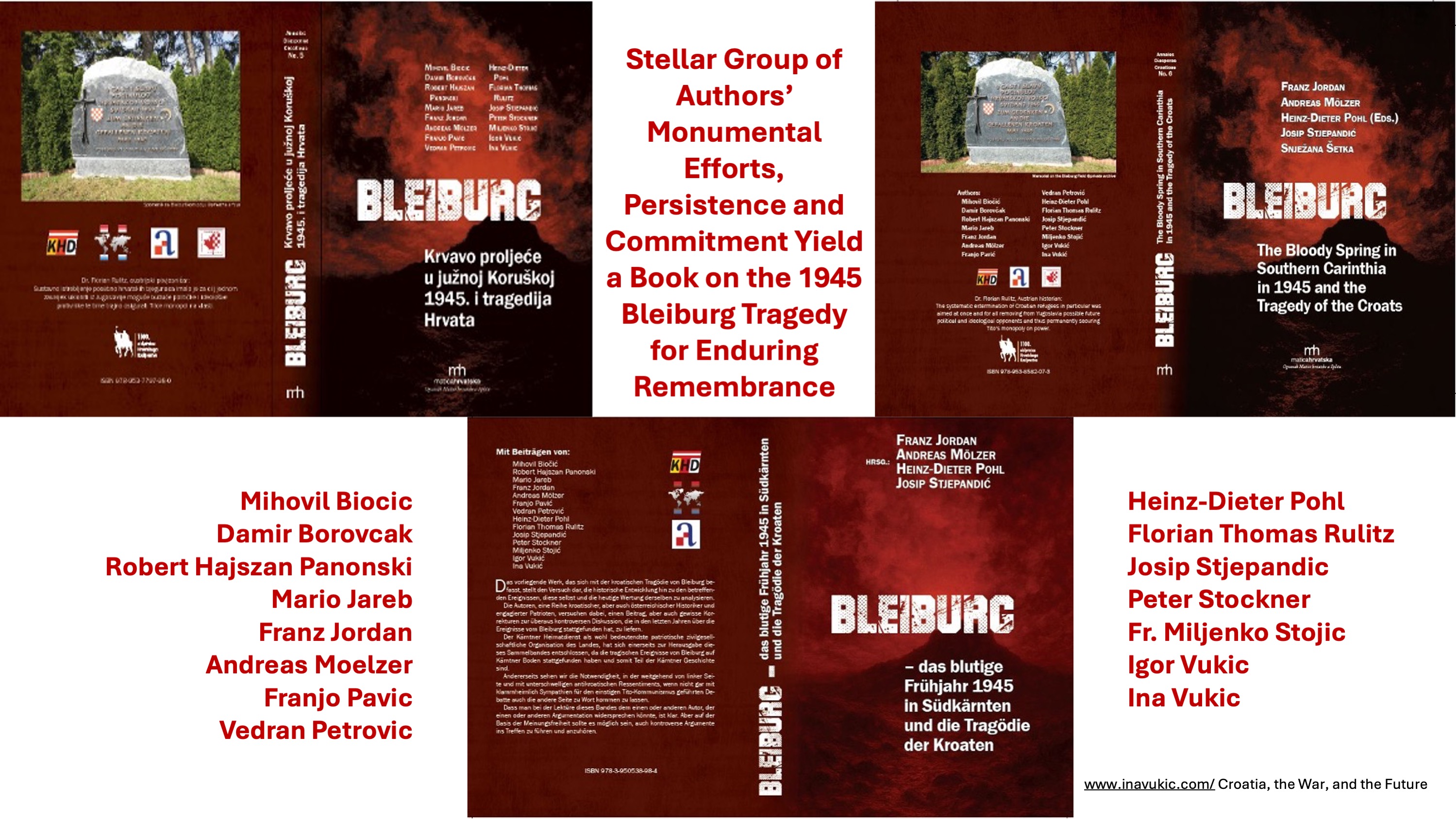 The Bleiburg Massacres: Eyewitness Testimonies on the Killing of Croats in Carinthia. (Dr. Florian Thomas Rulitz). This historical study explicitly deals with the victims of the Bleiburg Massacre and the Bleiburg and Viktring Tragedy in Austria, their actual numbers, the locations of the execution sites, the memories of eyewitnesses and the consequences of what happened, as well as the difficulties of dealing with the described events.